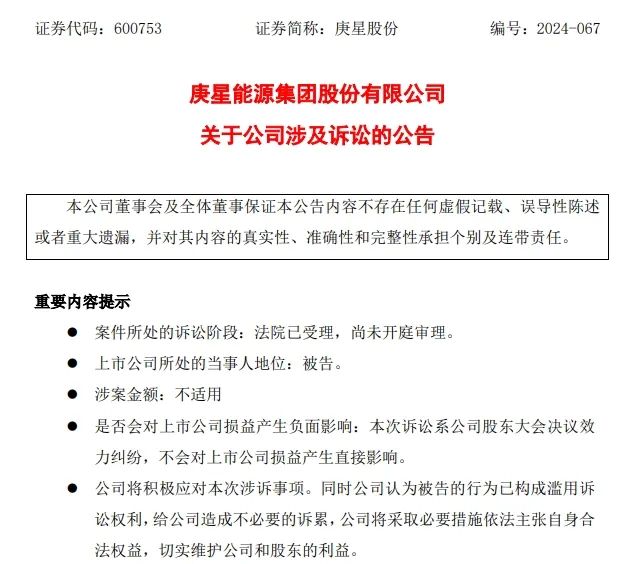 公告裸露,福建瑞善肯求东谈主民法院判令撤废被告庚星股份于2024年7月31日所作出的《庚星动力集团股份有限公司2024年第三次临时鼓吹大会决策》。